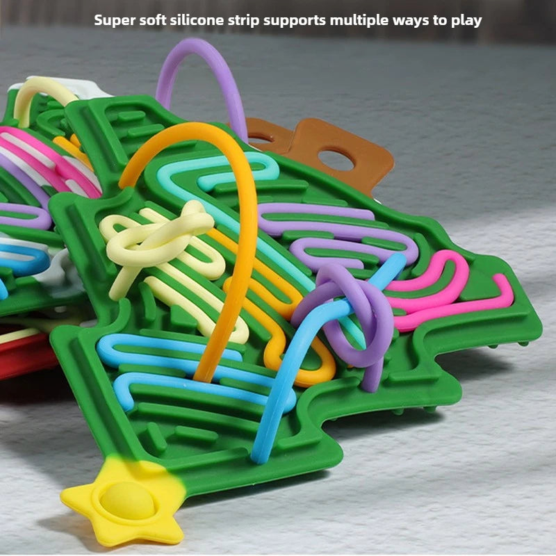 Die farbigen Silikonröhrchen lassen sich leicht entlang der verschlungenen Labyrinthe führen. Das wiederholte Gleiten entspannt nachweislich und hilft, Stress abzubauen.