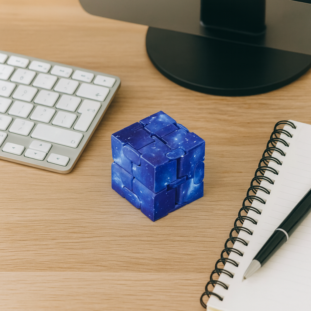 Das Spielen mit dem Würfel hilft, überschüssige Energie zu kanalisieren und Gedanken zu ordnen. Ideal beim Lernen, Arbeiten oder kreativen Denken.