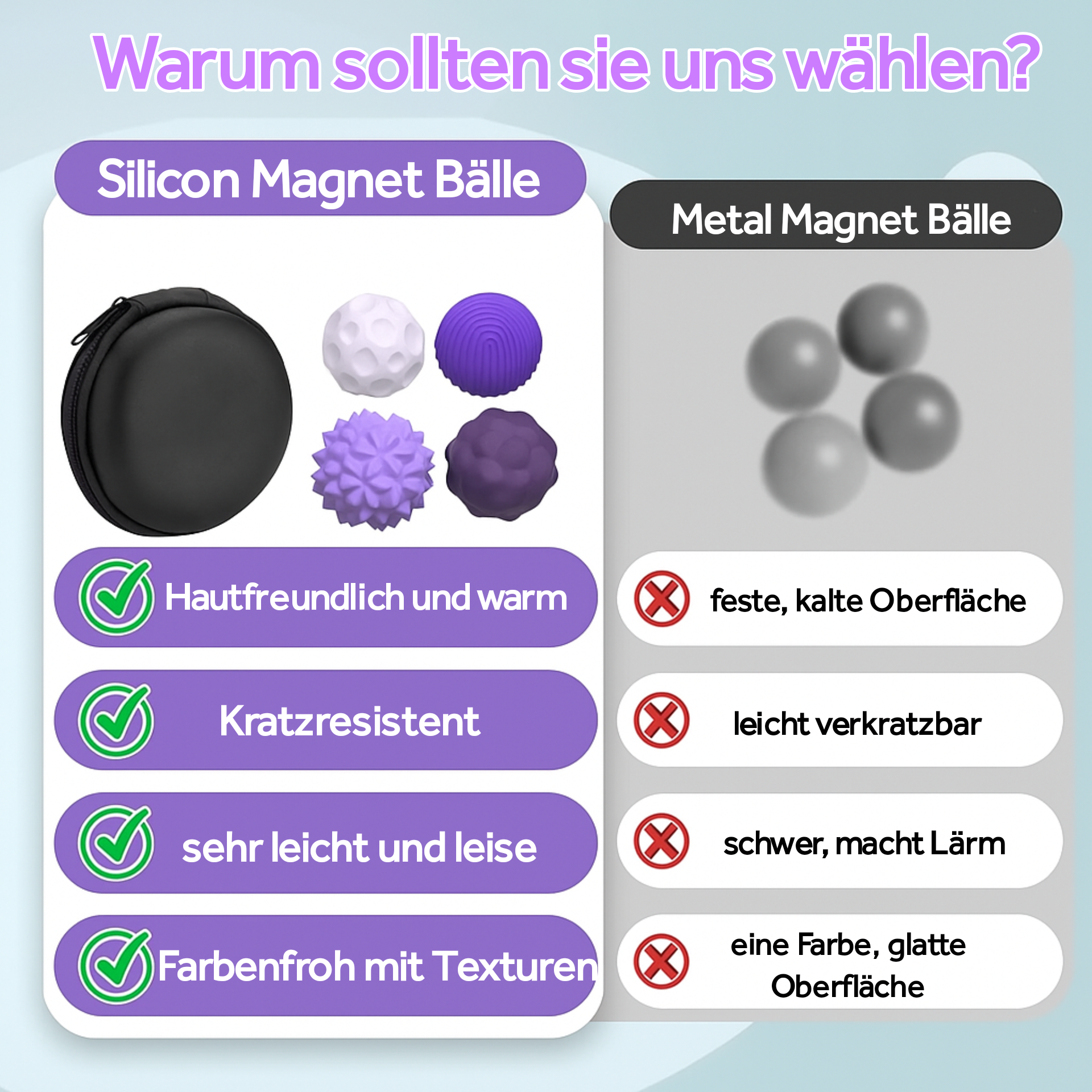 Die magnetischen Kugeln bieten eine sensorische Erfahrung, die Geist und Hände beruhigt. Ideal bei Angstzuständen, ADHS oder einfach zur Entspannung zwischendurch.